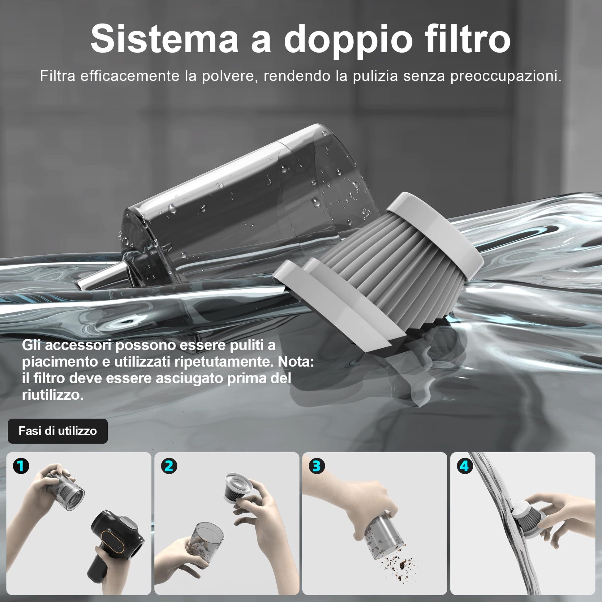 - Lightweight & Portable: Weighs only 330g for effortless use. Includes vacuum, 2 filters, 6 attachments, Type-C cable, and user manual.